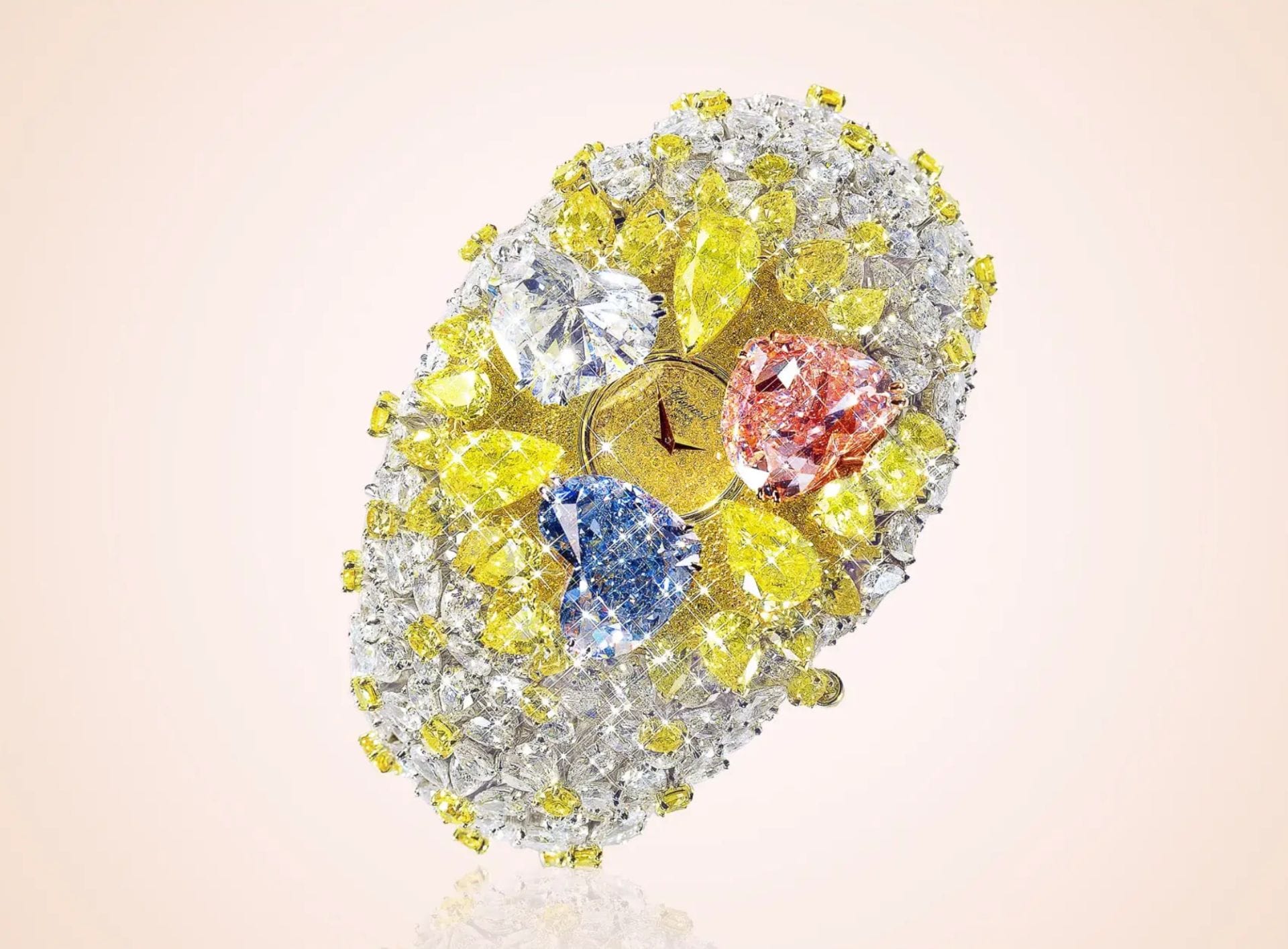 นี่คือหนึ่งในนาฬิกาข้อมือที่มีราคาแพงที่สุด โดยมีเพชร 874 เม็ด รวมทั้งหมด 201 กะรัต ตัวนาฬิกามีเสน่ห์น่าหลงใหลด้วยเพชรสุกใสจำนวนมากที่ประดับประดาอยู่บนผิวนาฬิกา เพชรสีน้ำเงินน้ำหนัก 12 กะรัต เพชรสีชมพูน้ำหนัก 15 กะรัต และเพชรสีขาวน้ำหนัก 11 กะรัต นอกจากนี้ยังมีเพชรสีเหลืองและสีขาวเพิ่มเติมรวม 163 กะรัตในนาฬิกาเรือนนี้ การดูนาฬิกาเรือนนี้เปรียบเสมือนการจ้องมองเข้าไปในความฝันอันสูงสุดของผู้ทำนายดวงชะตา ความงามของเพชรเม็ดเดียวก็เพียงพอที่จะดึงดูดใจ ผู้คนต่างหมกมุ่นอยู่กับหินที่แทบจะไม่มีวันแตกหักนี้ตั้งแต่แรกเห็น