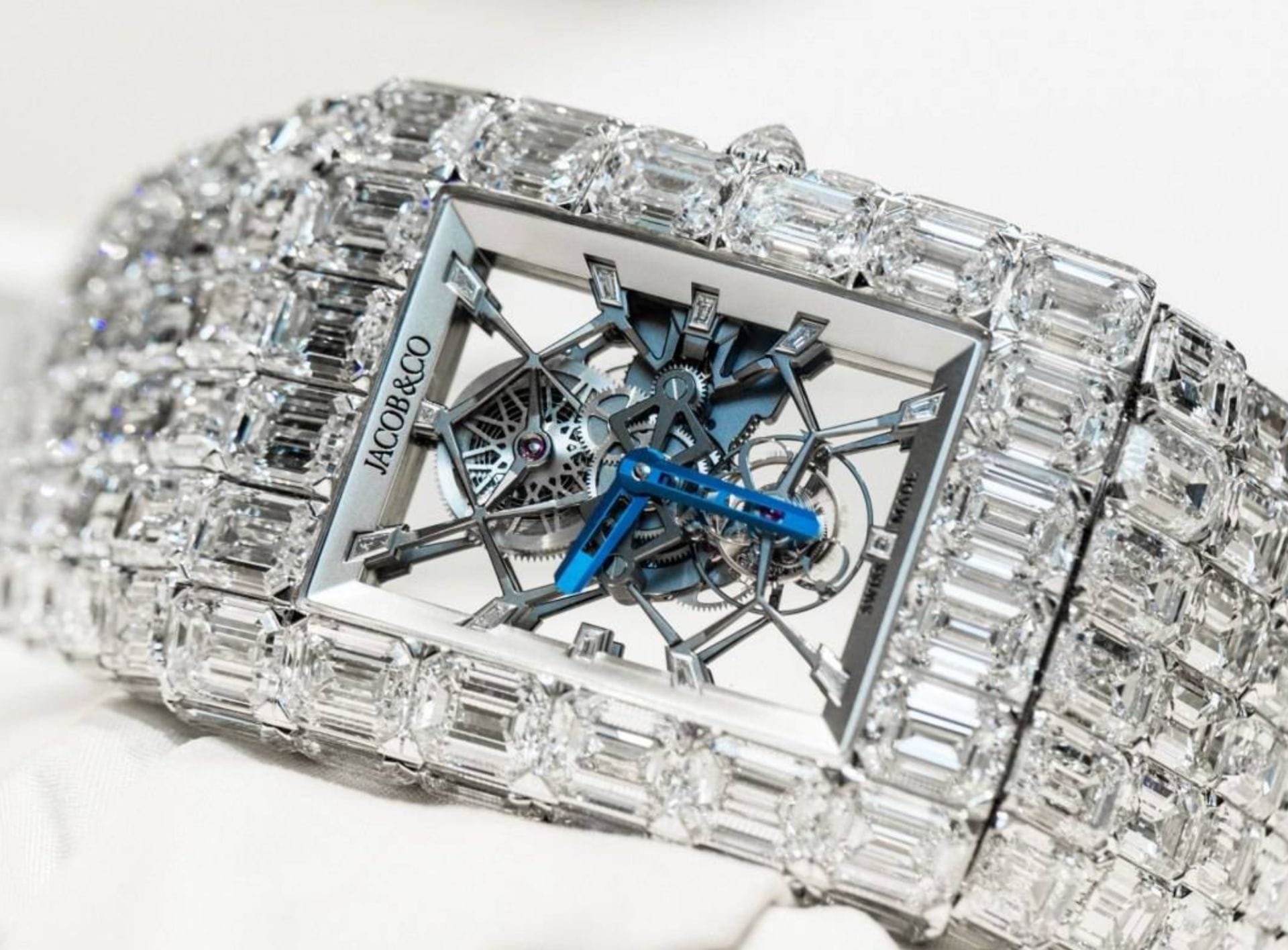 ตัวเรือนของนาฬิกาข้อมือประดับเพชร 260 กะรัต เพชรเจียระไนมรกตอันเป็นเอกลักษณ์เหล่านี้ไม่ได้เป็นเพียงหินแวววาวเท่านั้นที่ทำให้นาฬิการุ่นนี้โดดเด่น มหาเศรษฐียังมีอัญมณีอีก 19 ชิ้น ส่วนประกอบอีกประมาณ 167 ชิ้น และใบหน้าโครงกระดูก Jacob & Co. ขึ้นชื่อในด้านเครื่องประดับเพชรและอัญมณีอันประณีตซึ่งมีอัญมณีคุณภาพสูงในสภาพแวดล้อมที่สวยงามโดดเด่นสะดุดตาตั้งแต่แรกเห็น